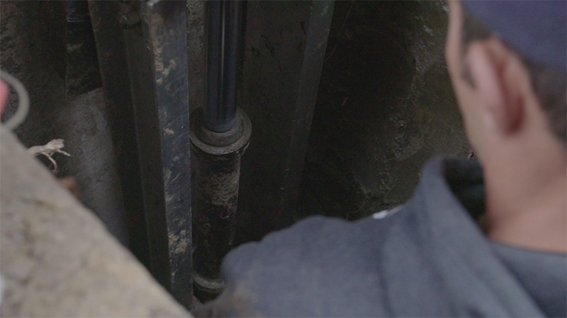 Next, rugged, interlocking steel pier sections are hydraulically driven through the bracket until bedrock or stable soil is reached. The weight of the home is then transferred through the piers to this load-bearing soil.
